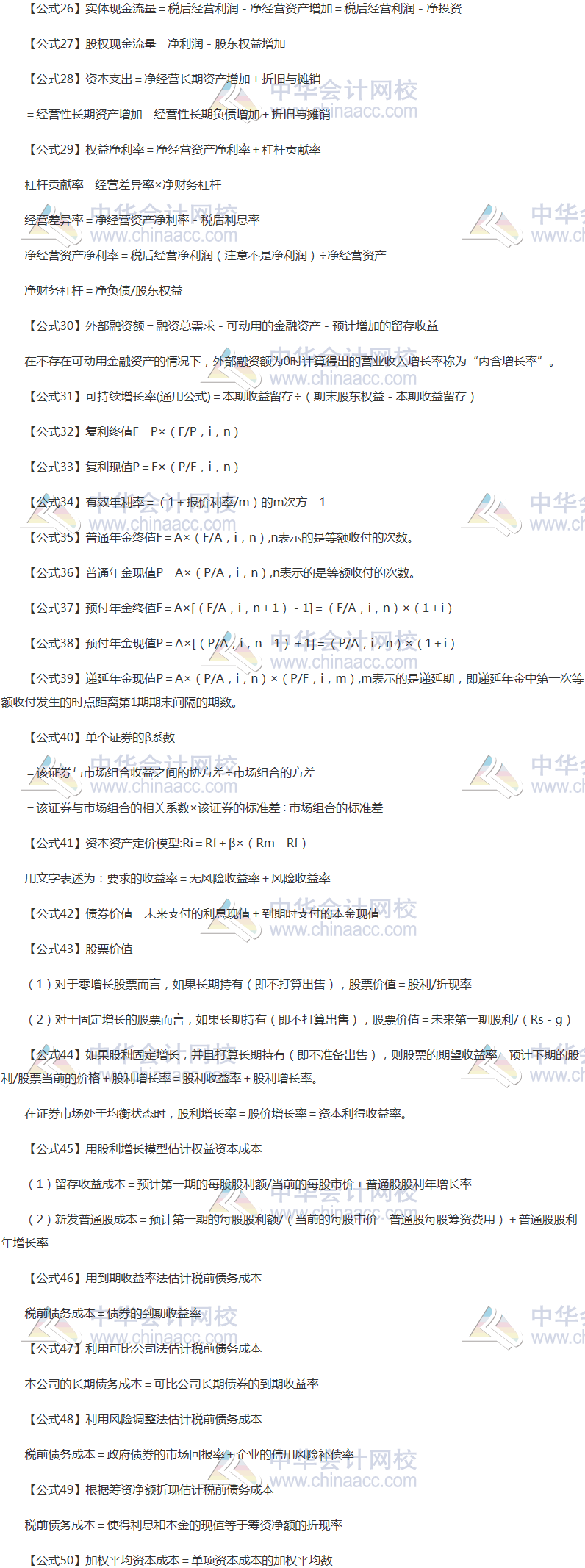 注冊會計師《財務成本管理》必須掌握的100個公式(二)
