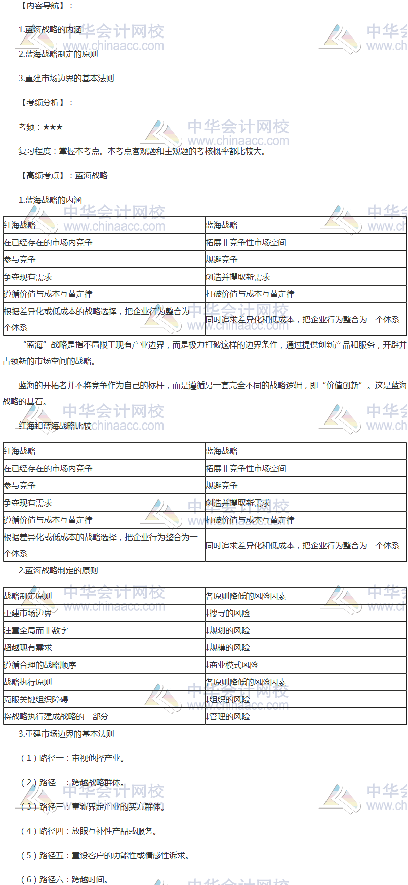2018年注冊會計師《戰略》高頻考點:藍海戰略