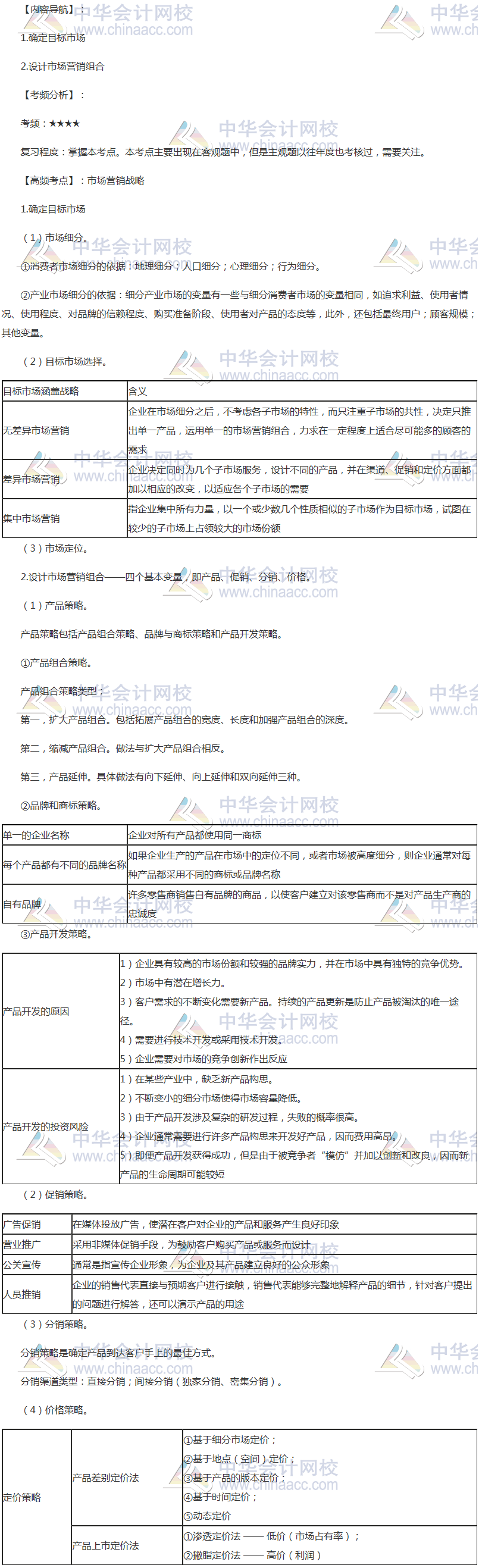 2018年注冊會計師《戰略》高頻考點:市場營銷戰略
