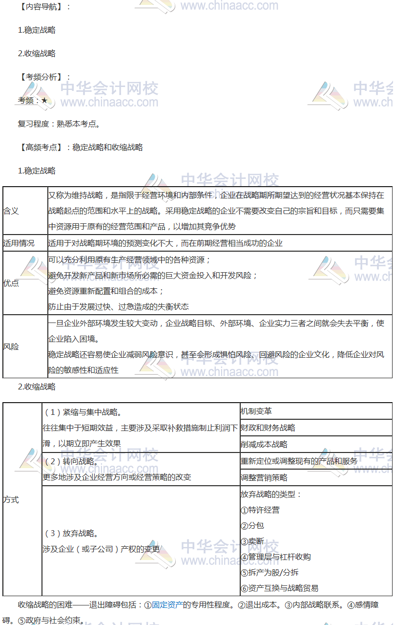 2018年注冊會計師《戰略》高頻考點:穩定戰略和收縮戰略