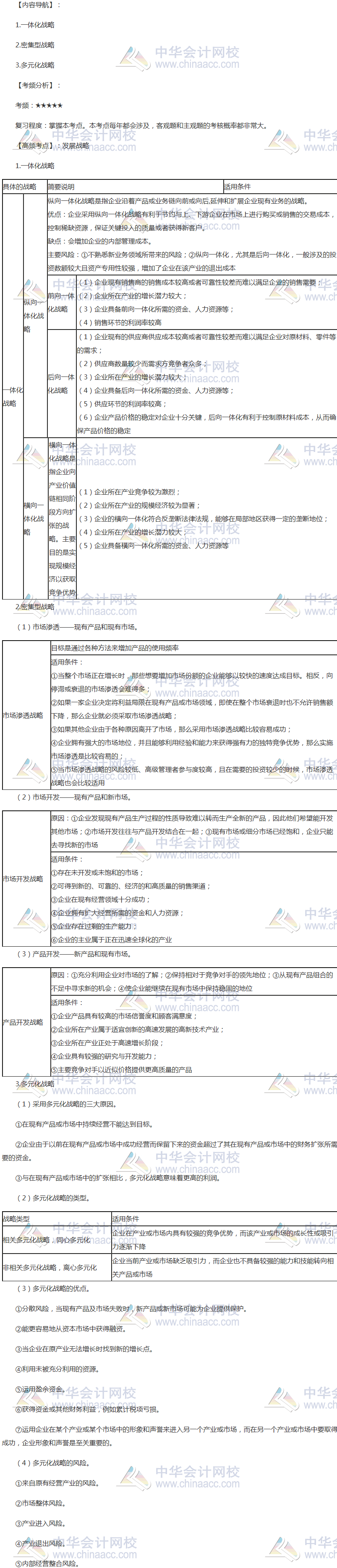 2018年注冊會計師《戰略》高頻考點:發展戰略