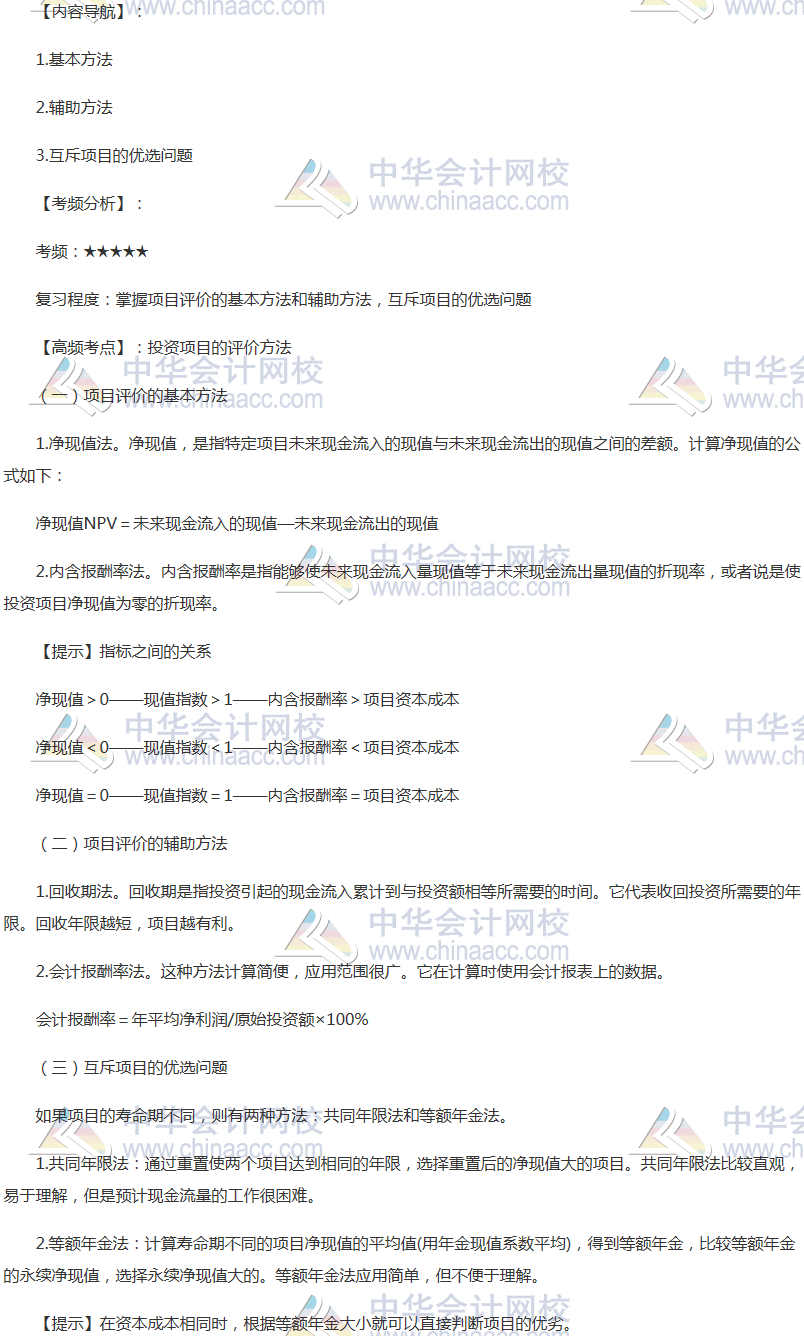 備考時間緊張,抓緊時間抓住重點備考注冊會計師吧!正保會計網(wǎng)校教學(xué)老師為廣大考生整理了高頻考點, 我們一起來學(xué)習(xí)2018年《財務(wù)成本管理》高頻考點:投資項目的評價方法。本考點屬于《財務(wù)成本管理》第五章投資項目資本預(yù)算第二節(jié)投資項目的評價方法的內(nèi)容。