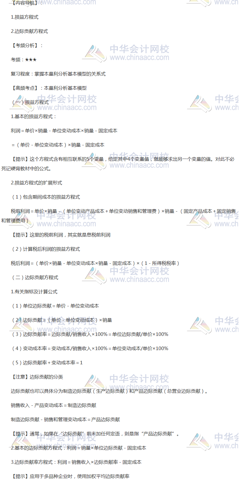 2018年注冊會計師《財管》高頻考點:本量利分析基本模型