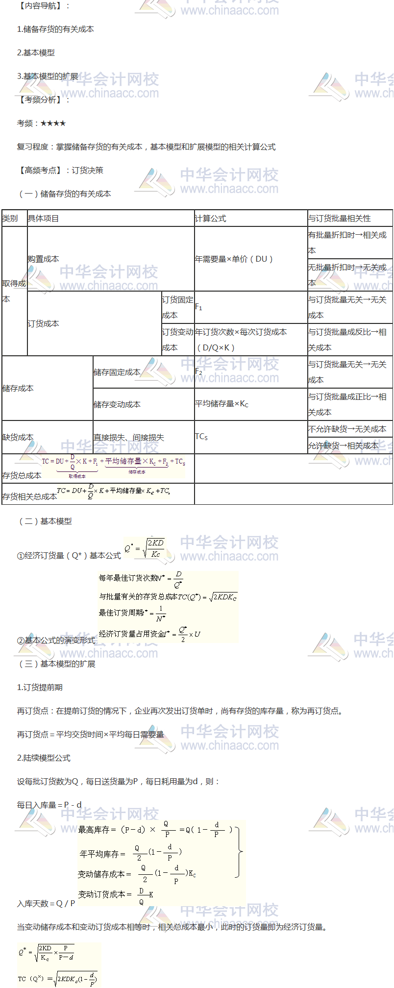 2018年注冊會計師《財管》高頻考點:訂貨決策