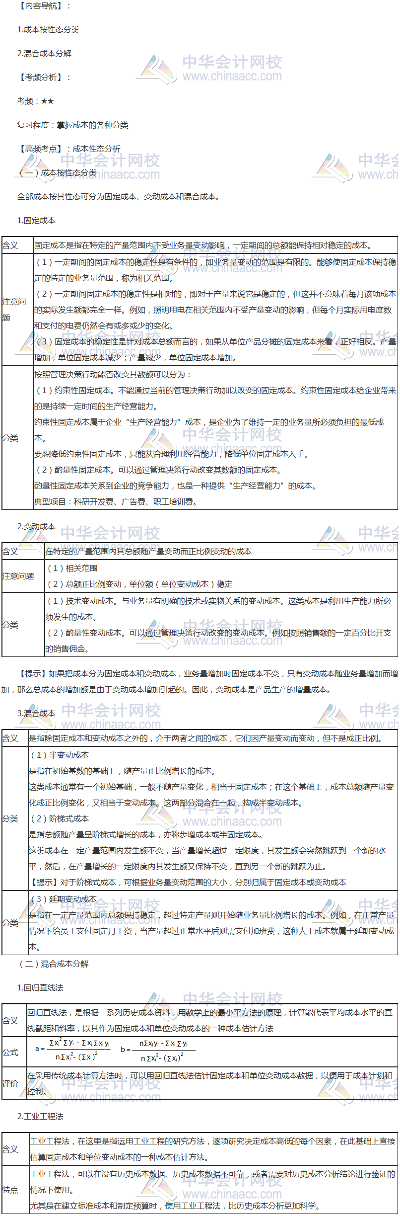2018年注冊會計師《財管》高頻考點:成本性態分析