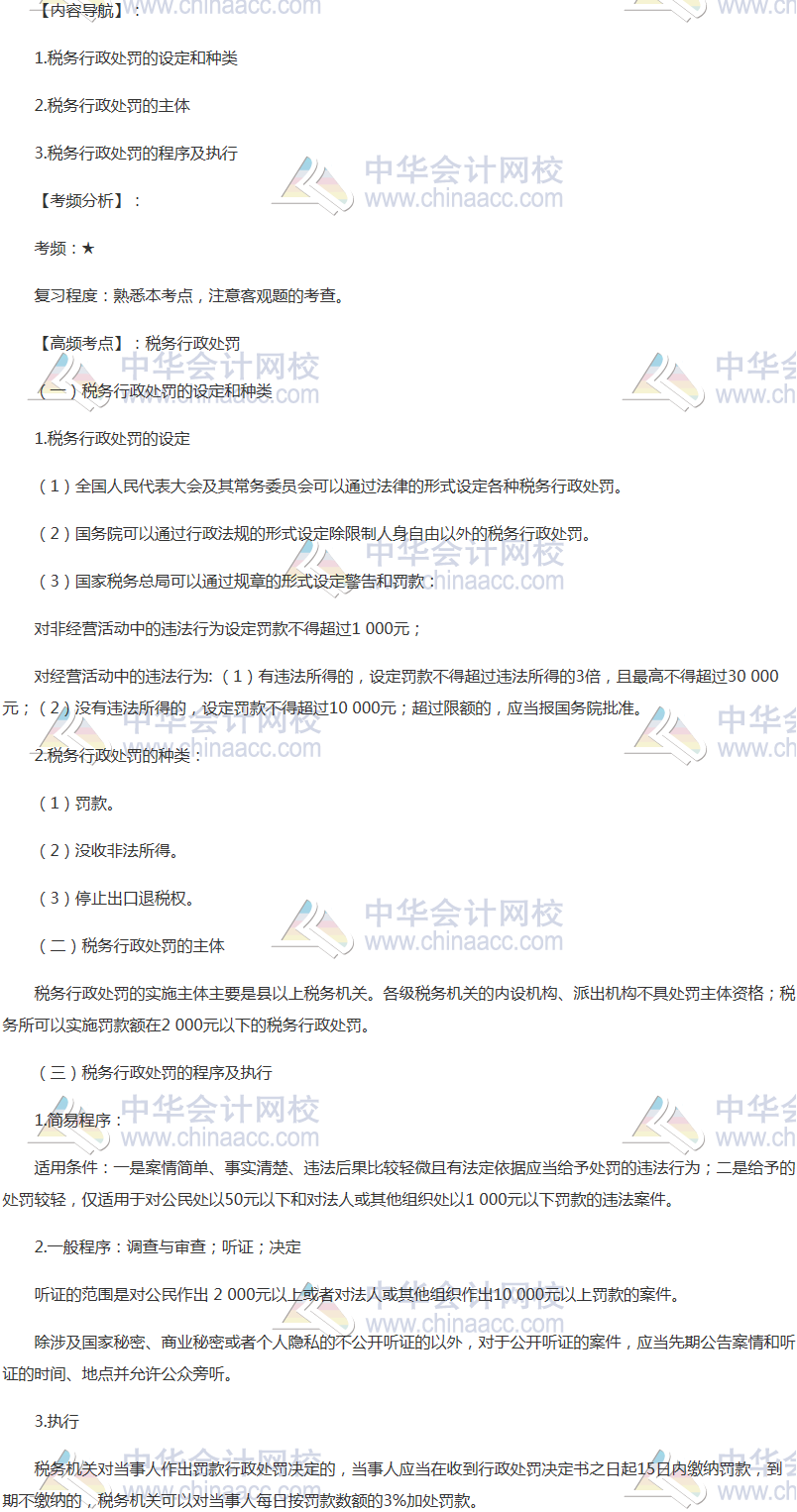 備考時間緊張,抓緊時間抓住重點備考注冊會計師吧!正保會計網校教學老師為廣大考生整理了高頻考點,我們一起來學習2018年《稅法》高頻考點:稅務行政處罰。本考點屬于《稅法》第十四章稅務行政法制第一節稅務行政處罰的內容。