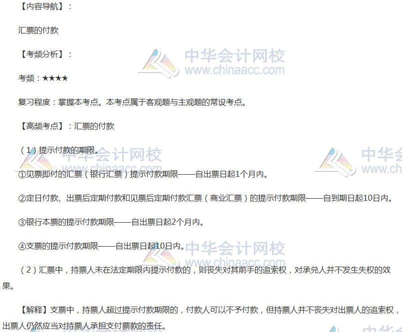 備考時間緊張,抓緊時間抓住重點備考注冊會計師吧!正保會計網校教學老師為廣大考生整理了高頻考點,我們一起來學習2018《經濟法》高頻考點:匯票的付款。本考點屬于《經濟法》第九章票據與支付結算法律制度第二節票據法律制度的內容。