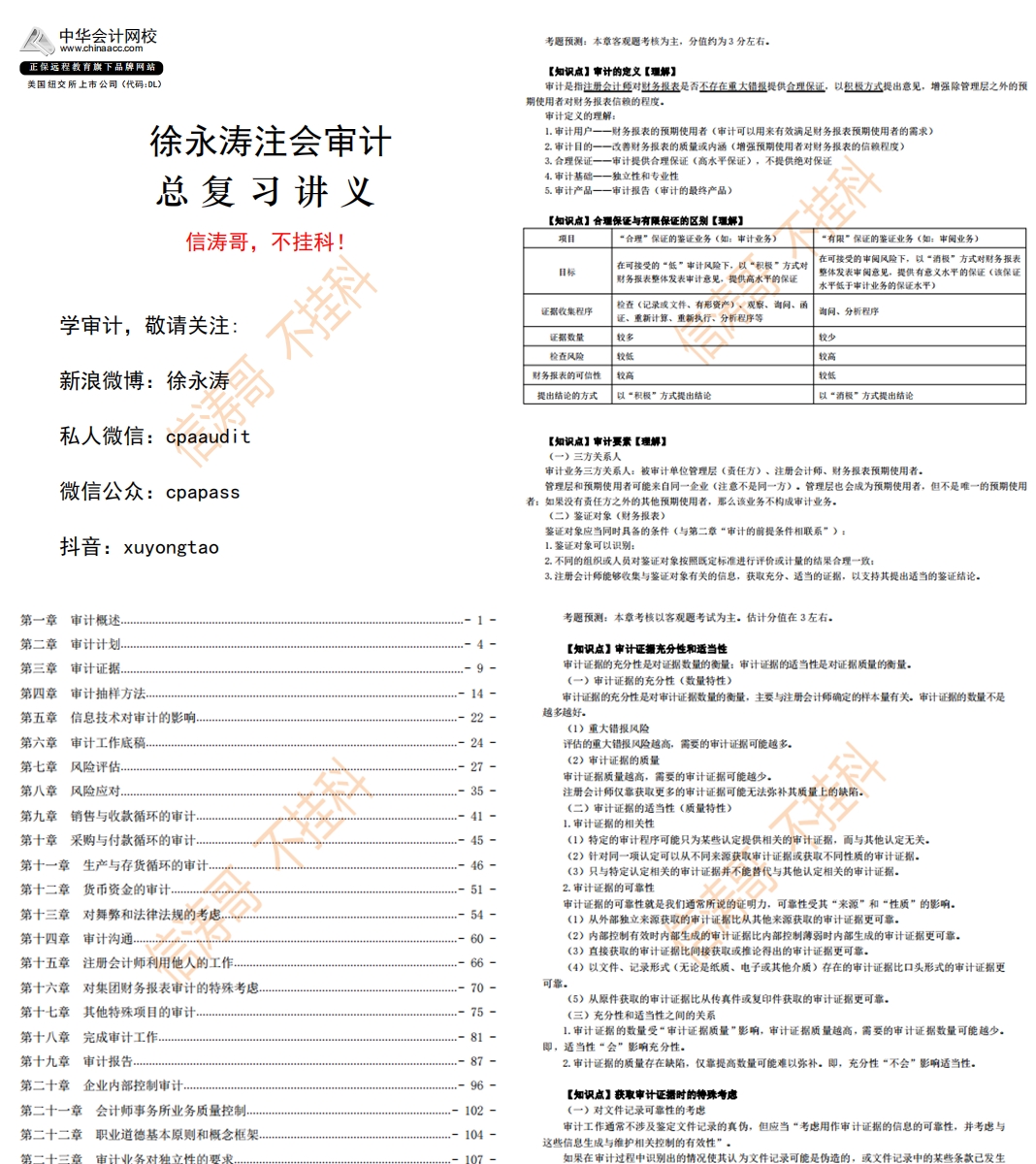 為了能讓大家好好利用國慶假期,@徐永濤老師為注會的寶寶們送來了《審計》的備考“利器”,好東西都值得擁有!