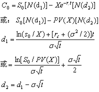 布萊克-斯科爾斯期權定價模型的公式如下: