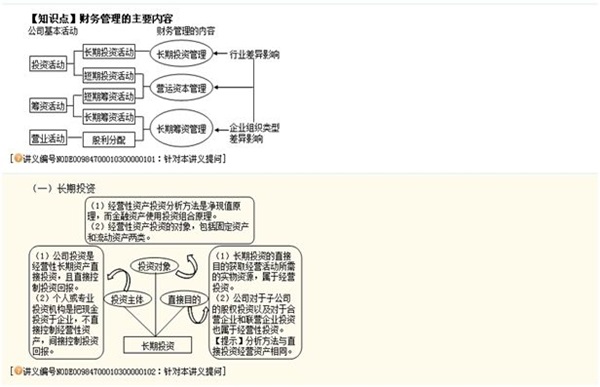 例如,單利、復利、復利終值與現值、報價利率、有效年利率、計息期利率、年金、普通年金終值、償債基金、普通年金現值、投資回收系數、預付年金終值與現值、永續年金現值等這些都是知識“點”;共同構成貨幣時間價值這條“線”;貨幣時間價值這條“線”與資本成本計量、現金流量估計、項目評價方法等多條“線”共同形成資本預算這個“面”;資本預算與財務報表分析、長期計劃與財務預測、風險與報酬、企業價值評估、期權價值評估、股利分配、資本結構、長期籌資、營運資本投資與籌資等多個“面”構成了財務管理的“體”。