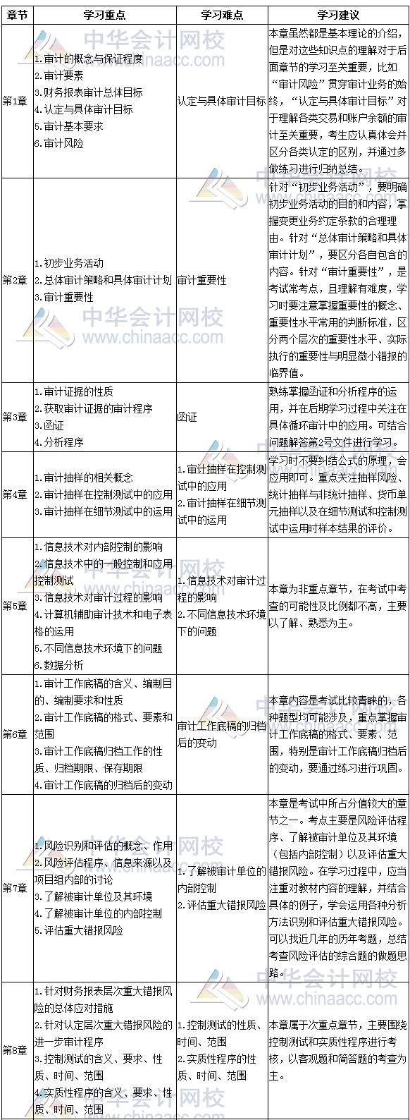 注會審計學習重難點一覽表 附學習建議
