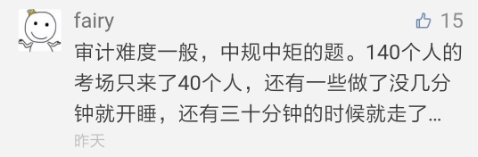 2017年注冊會計師考試于10月14日至15日舉行,六個科目分成6個場次單獨考試。已經考完的小伙伴們紛紛在正保會計網校論壇、注冊會計師網校官微等平臺,針對考試難度、考場趣聞等發表了精彩有料的評論,從他們的評論中,你也許能get不少考試信息哦,一起來看看吧!