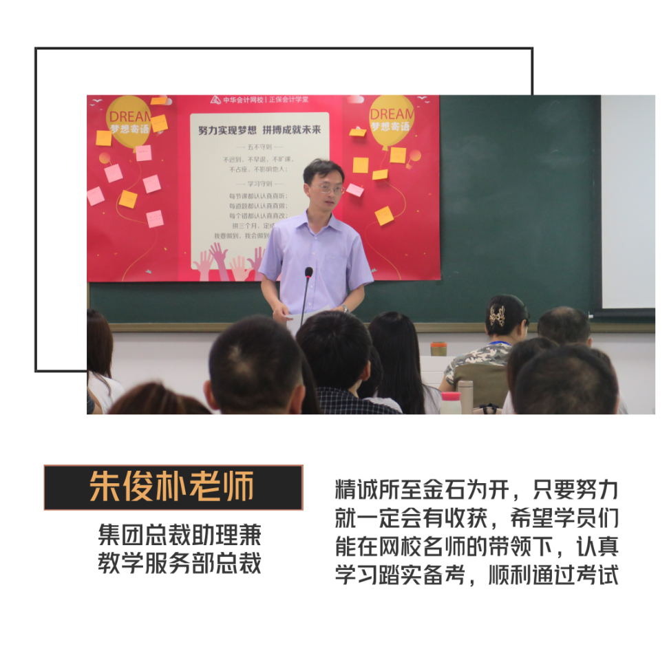 集團總裁助理兼教學服務部總裁朱俊樸老師為CPA高端面授班的學員致辭,他表示希望提供最專業(yè)的教學服務來幫助學員們順利備考,并也希望學員們多提寶貴的建議,讓面授班的教學和服務越來越好,能更好地服務于廣大的CPA考生。可見網(wǎng)校高層領(lǐng)導對咱們高端面授學員的重視。