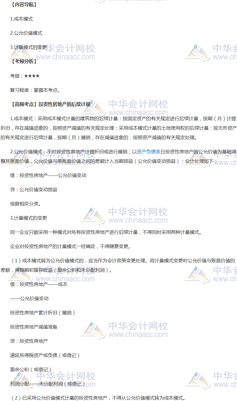 2018年注會《會計》高頻考點:投資性房地產的后續計量
