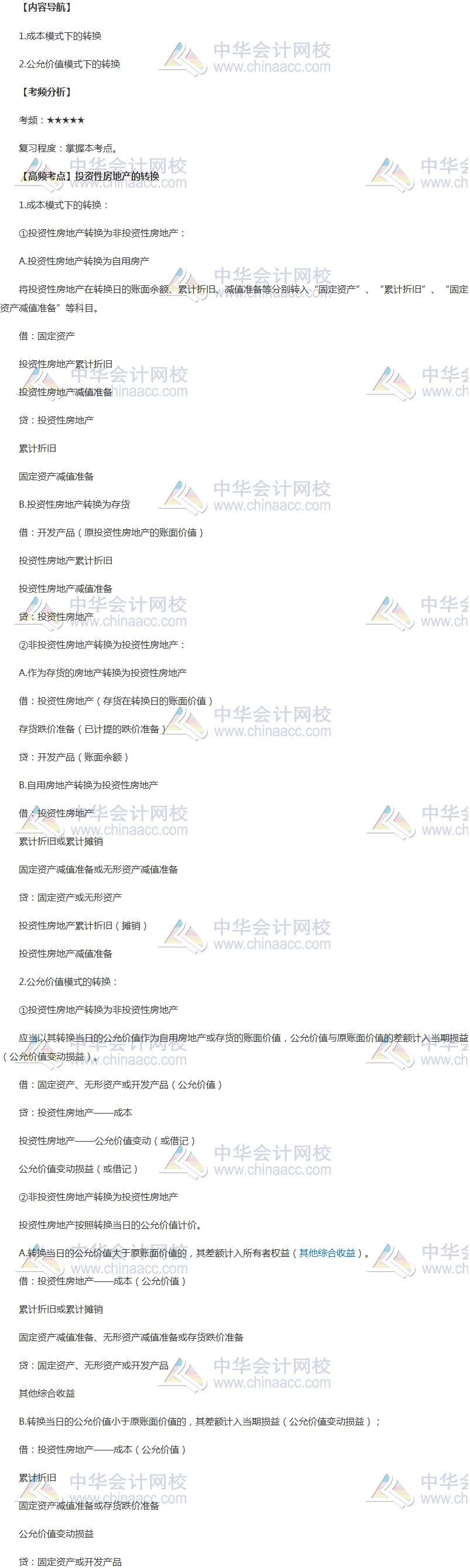 2018年注會《會計》高頻考點:投資性房地產的轉換