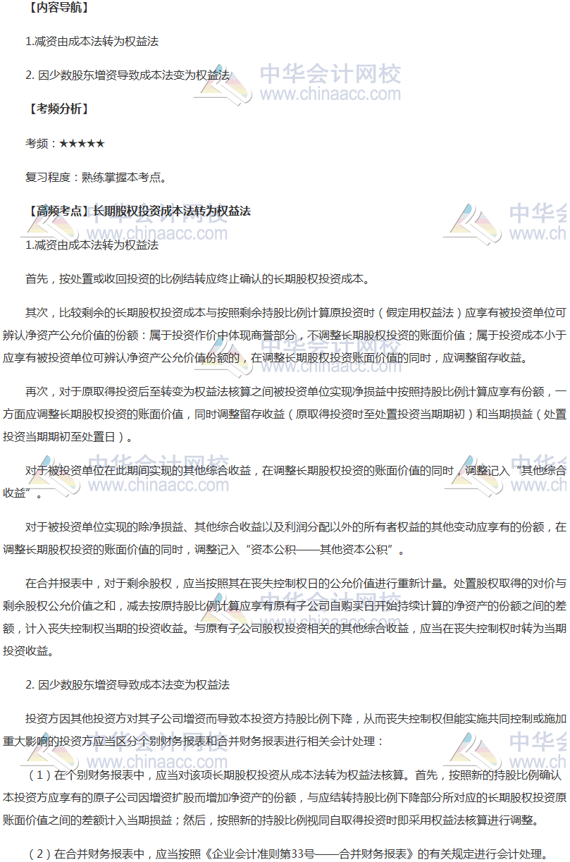 2018年注會《會計》高頻考點:長期股權投資成本法轉為權益法