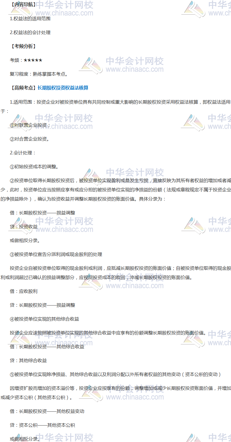 備考時間緊張,抓緊時間抓住重點(diǎn)備考注冊會計師吧!正保會計網(wǎng)校教學(xué)老師為廣大考生整理了高頻考點(diǎn),我們一起來學(xué)習(xí)2018《會計》高頻考點(diǎn):長期股權(quán)投資的權(quán)益法核算。本考點(diǎn)屬于《會計》第七章長期股權(quán)投資與合營安排第三節(jié)長期股權(quán)投資的后續(xù)計量的內(nèi)容。