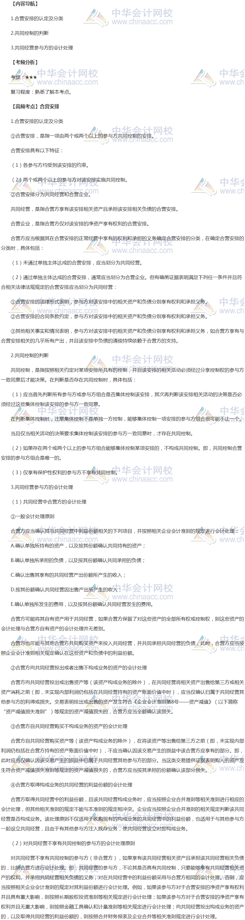 備考時間緊張,抓緊時間抓住重點備考注冊會計師吧!正保會計網校教學老師為廣大考生整理了高頻考點,我們一起來學習2018《會計》高頻考點:合營安排。本考點屬于《會計》第七章長期股權投資與合營安排第五節合營安排的內容。