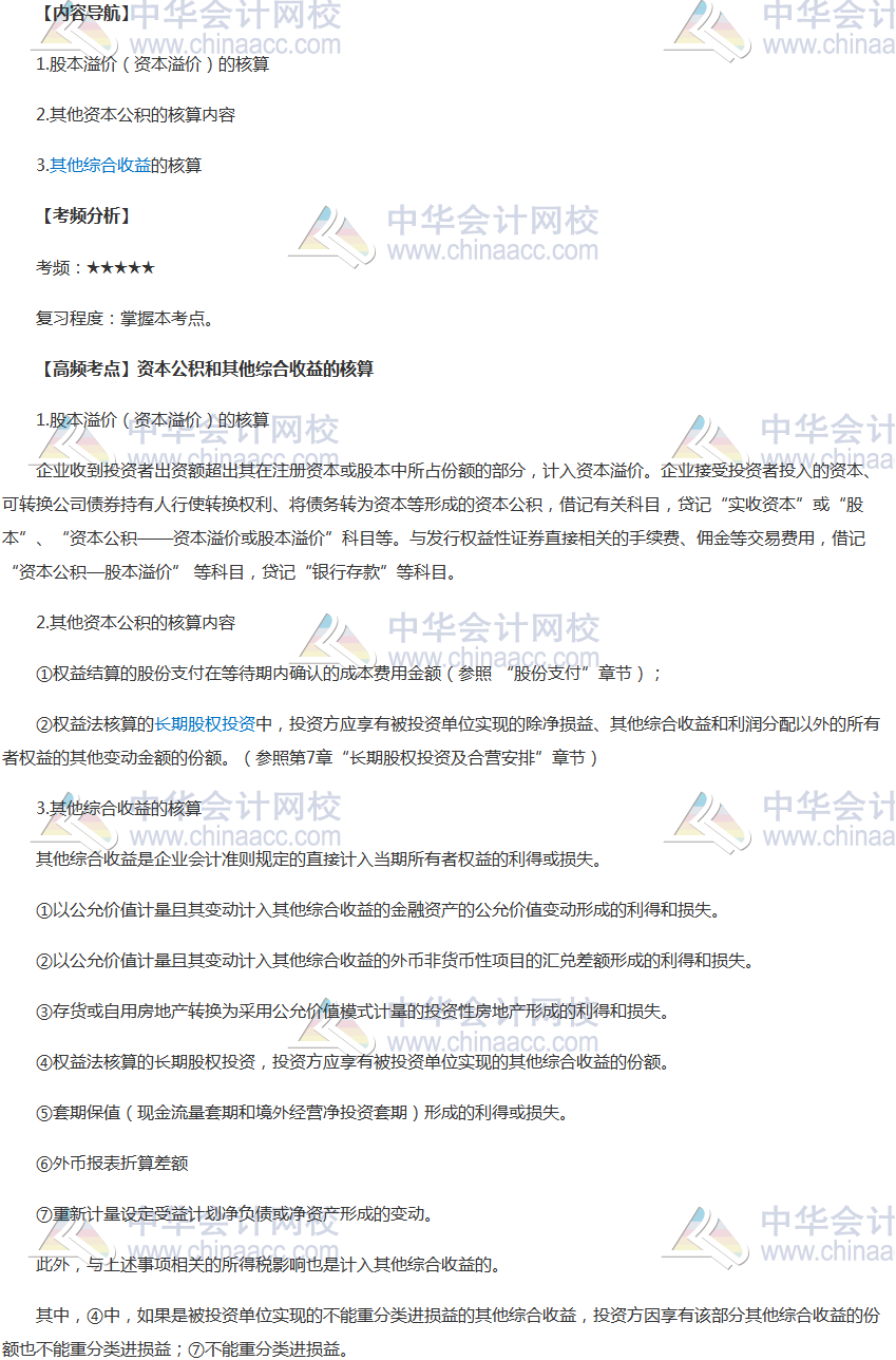 《會計》高頻考點:資本公積和其他綜合收益的核算