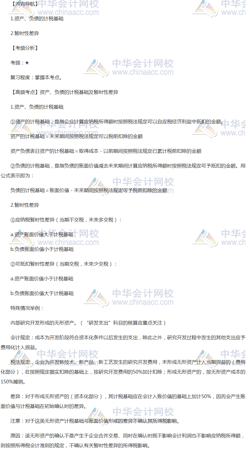 2018《會計》高頻考點:資產、負債的計稅基礎及暫時性差異