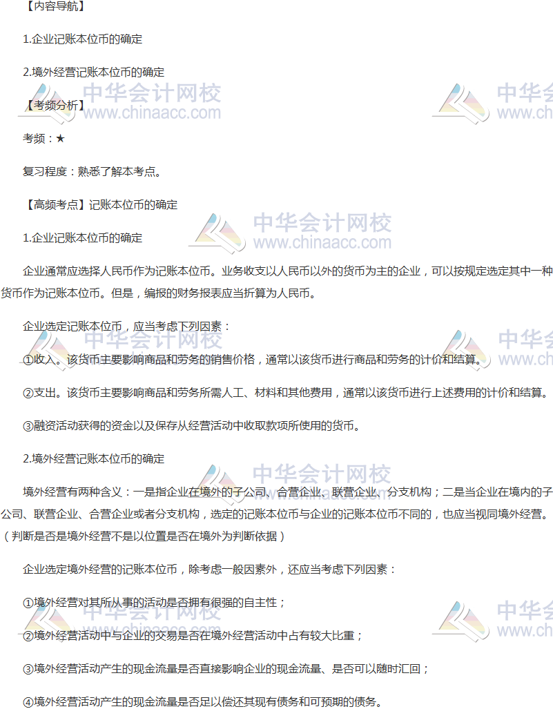 2018《會計》高頻考點:記賬本位幣的確定