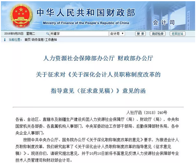 文件表明:形成初、中、高層次清晰,相互銜接、體系完整的會計人員職稱體系!