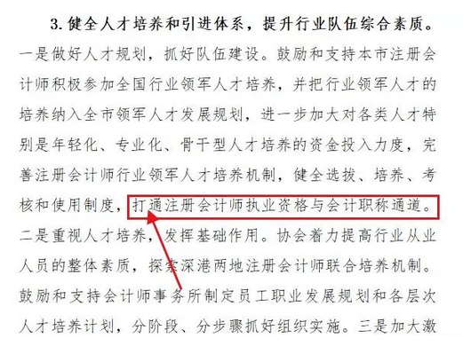 在今年8月份,深圳市財政委員會組織召開了《關于加快我市注冊會計師行業發展的實施意見》的聽證會,其中也提到將打通注冊會計師執業資格和會計職稱通道!