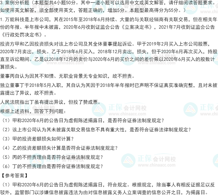 【點(diǎn)評(píng)】本題考核“投資者損失”的知識(shí)點(diǎn)。該題目所涉及知識(shí)點(diǎn)在下列正保會(huì)計(jì)網(wǎng)校(www.sgjweuf.cn)2022年注冊(cè)會(huì)計(jì)師考試輔導(dǎo)《經(jīng)濟(jì)法》中均有體現(xiàn):