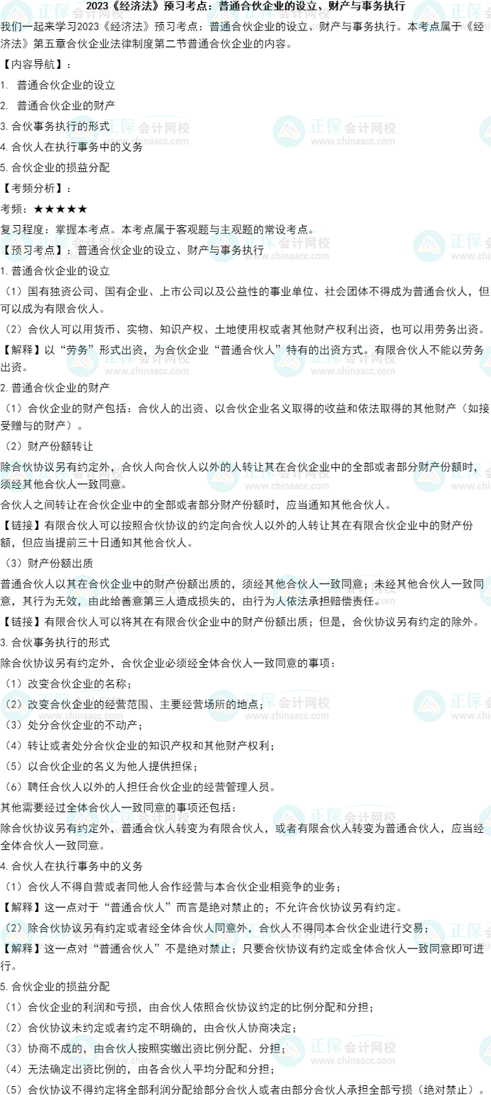 考點一 | 普通合伙企業(yè)的設(shè)立、財產(chǎn)與事務(wù)執(zhí)行 | ★★★★★ |