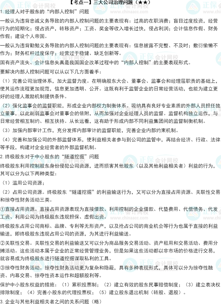 預(yù)習(xí)考點(diǎn) | 三大公司治理問(wèn)題、公司內(nèi)部治理結(jié)構(gòu)、公司治理基礎(chǔ)設(shè)施 |