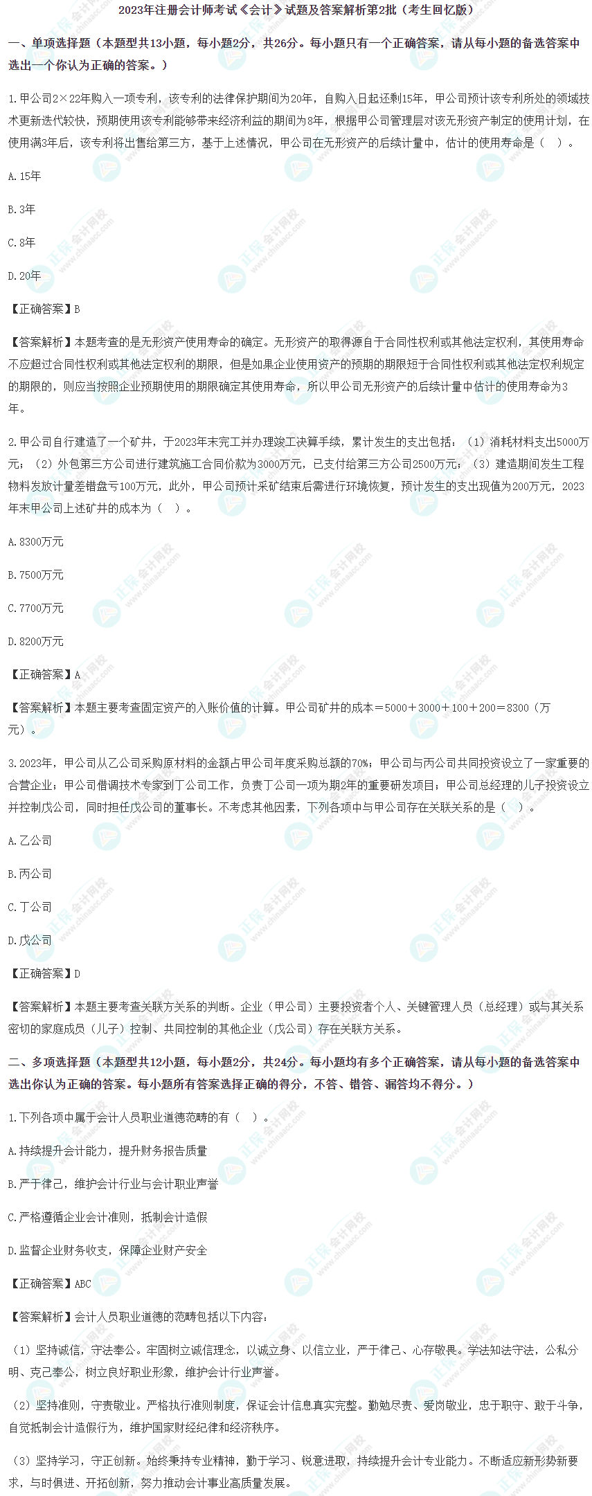 >>2023注冊會計師考試試題及參考答案解析匯總(考生回憶版)