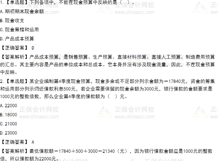 【知識點】現金預算