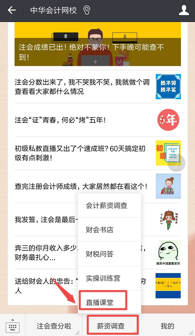 關注正保會計網校微信官方公眾號微信號:wx_chinaacc,點擊菜單中間——【直播課堂】——進入本次直播交流教室【2018年注會考試備考策略】。