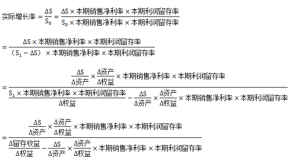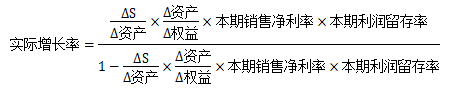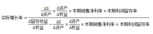 上述公式為實際增長率的通用公式。當然,為了能夠與可持續增長率進行比較,需要考慮可持續增長率的前提假設條件:不增發新股。