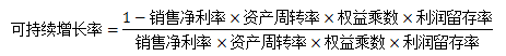 這個公式的表達方式與可持續增長率的表現方式如出一轍,只不過分子分母的資產周轉率和權益乘數體現的是增量比的概念。