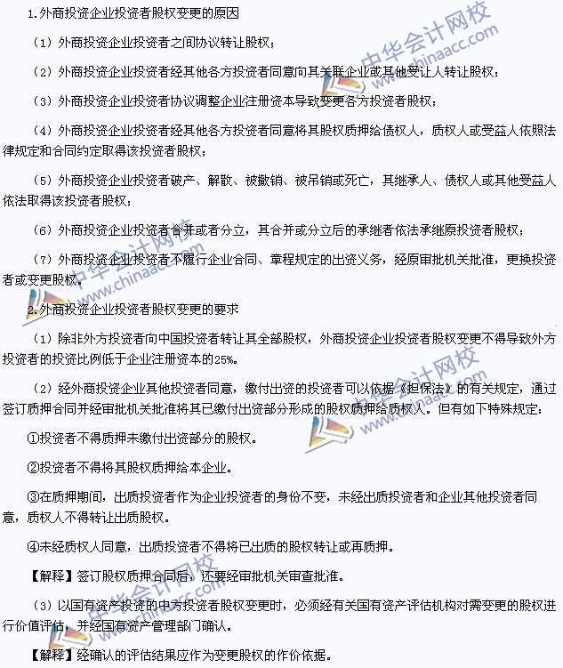 2015年注冊會計師經濟法預習:外商投資企業投資者股權變更