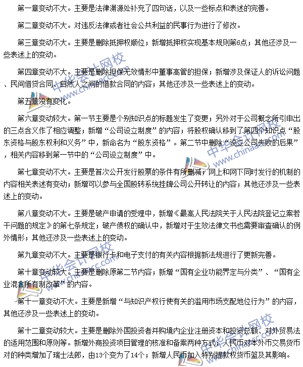 2016年注冊會計師考試《經濟法》新舊教材變化對比