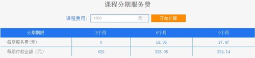 舉個例子,購買注會三科精品直達班,一共需要1860元。如果選擇分期付款,3期每期花費600多元,6期每期花費300多元,9期每期200多元。的確很實惠。