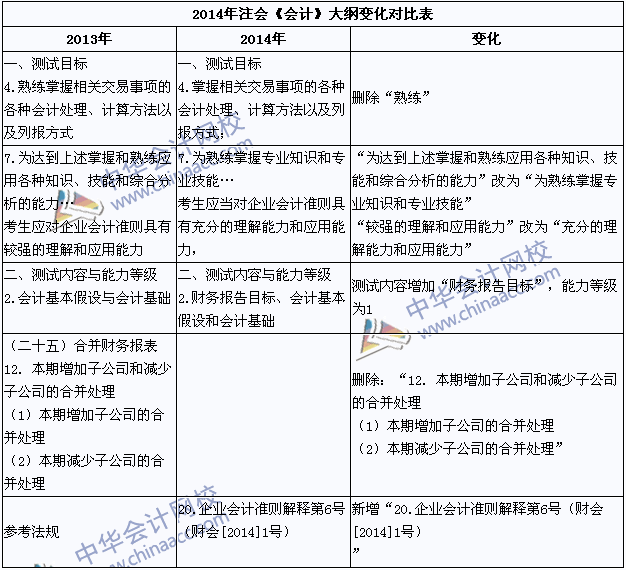 2014年注冊(cè)會(huì)計(jì)師考試新舊大綱變化對(duì)比