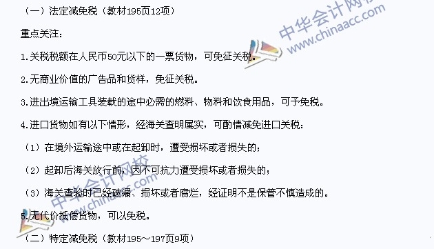 2015年注冊會計師考試稅法預習:關稅減免稅