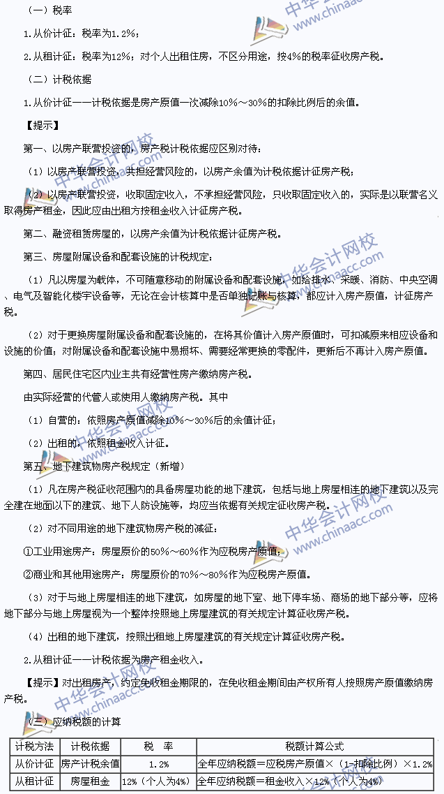 2015年注冊會計師考試稅法預習:房產(chǎn)稅稅率