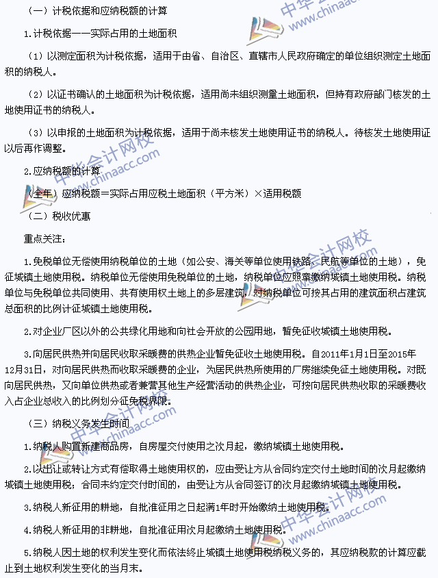 2015年注冊會計師考試稅法預習:城鎮土地使用稅法