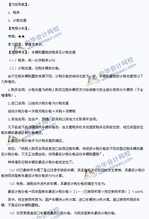 2013注會考試《稅法》高頻考點:車輛購置稅的稅率及計稅依據