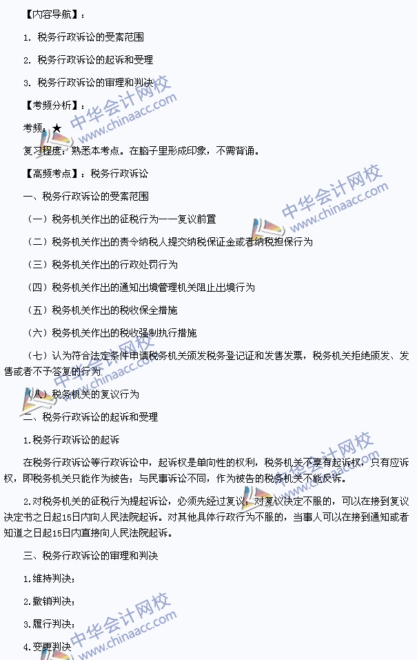 2013注會考試《稅法》高頻考點:稅務行政訴訟