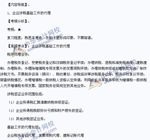 2013注會考試《稅法》高頻考點:企業涉稅基礎工作的代理