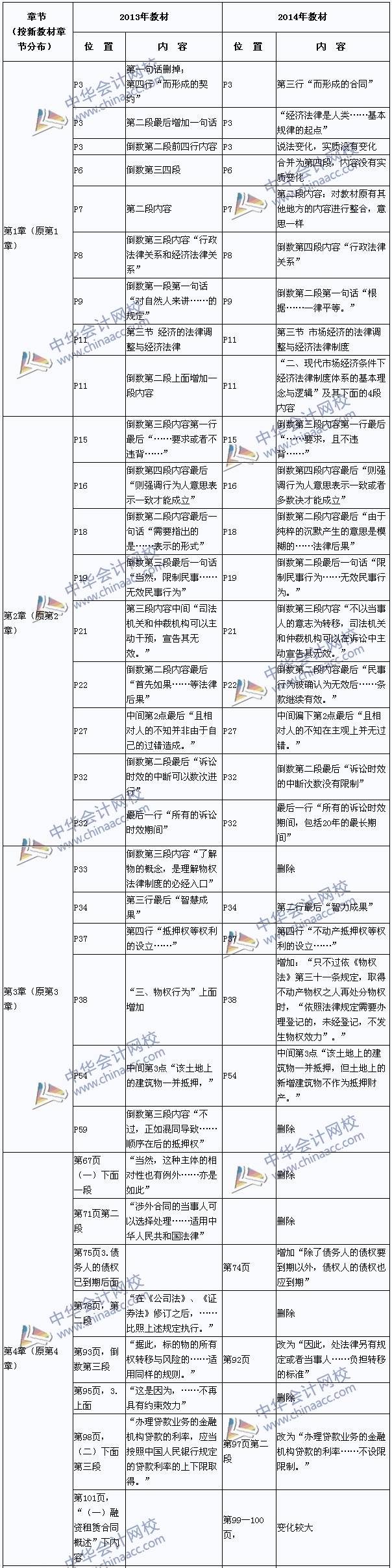 2014年注冊會計師考試《經濟法》新舊教材變化對比