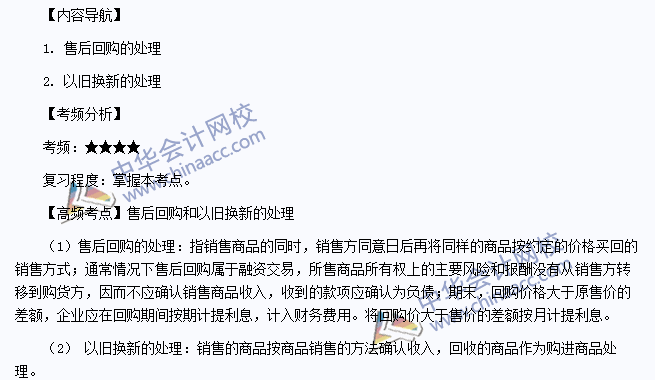 2014注冊會計師《會計》高頻考點:售后回購和以舊換新的處理