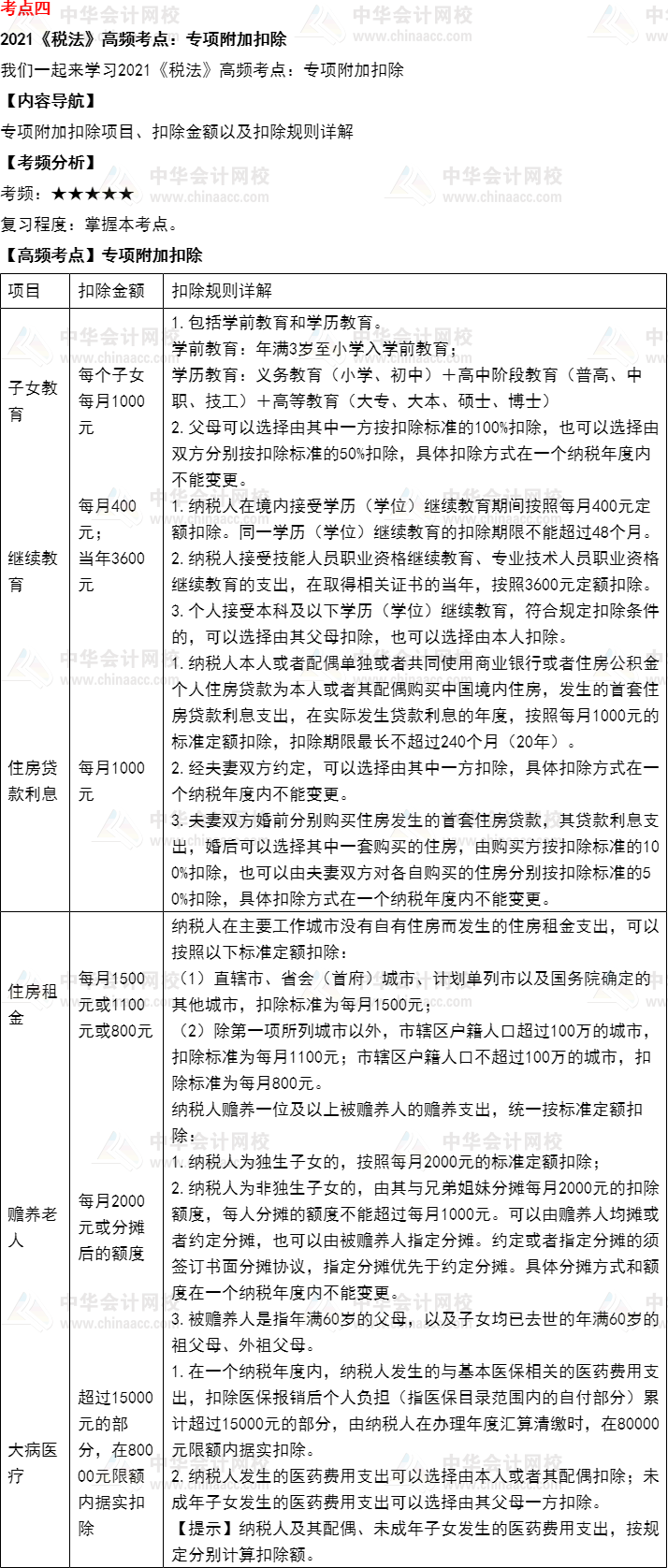 我們一起來(lái)學(xué)習(xí)2021年《稅法》高頻考點(diǎn):專項(xiàng)附加扣除。本考點(diǎn)屬于《稅法》第五章個(gè)人所得稅法的內(nèi)容。