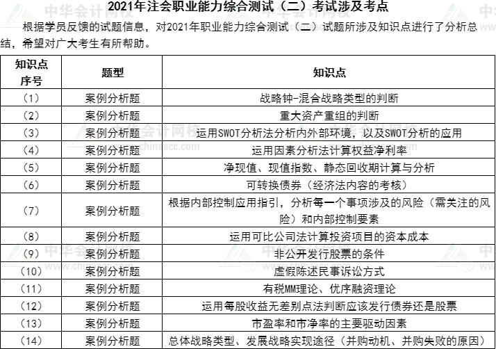 2021注冊會計師綜合職業能力綜合測試(二)考點總結(考生回憶版)