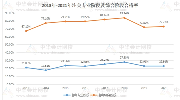 最后,我們看看2013年-2021年注會(huì)專業(yè)階段及綜合階段的整體合格率,具體內(nèi)容如下:
